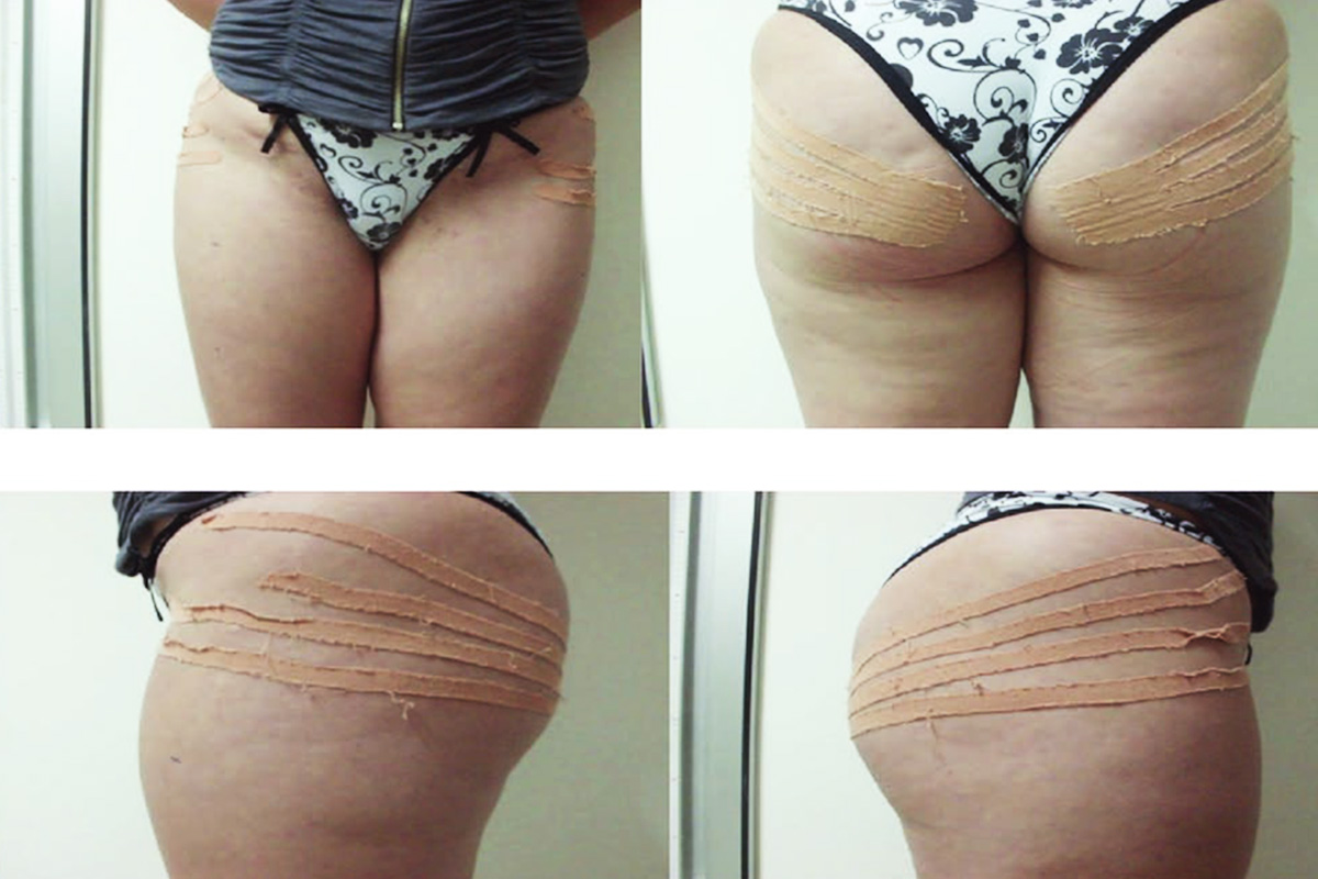 As for volumes, in my practice, anti-cellulite taping in the hips and buttocks area really has little effect on volumes. Therefore, patients should not be oriented toward reducing the volume of their hips and buttocks after a course of anti-cellulite taping.
