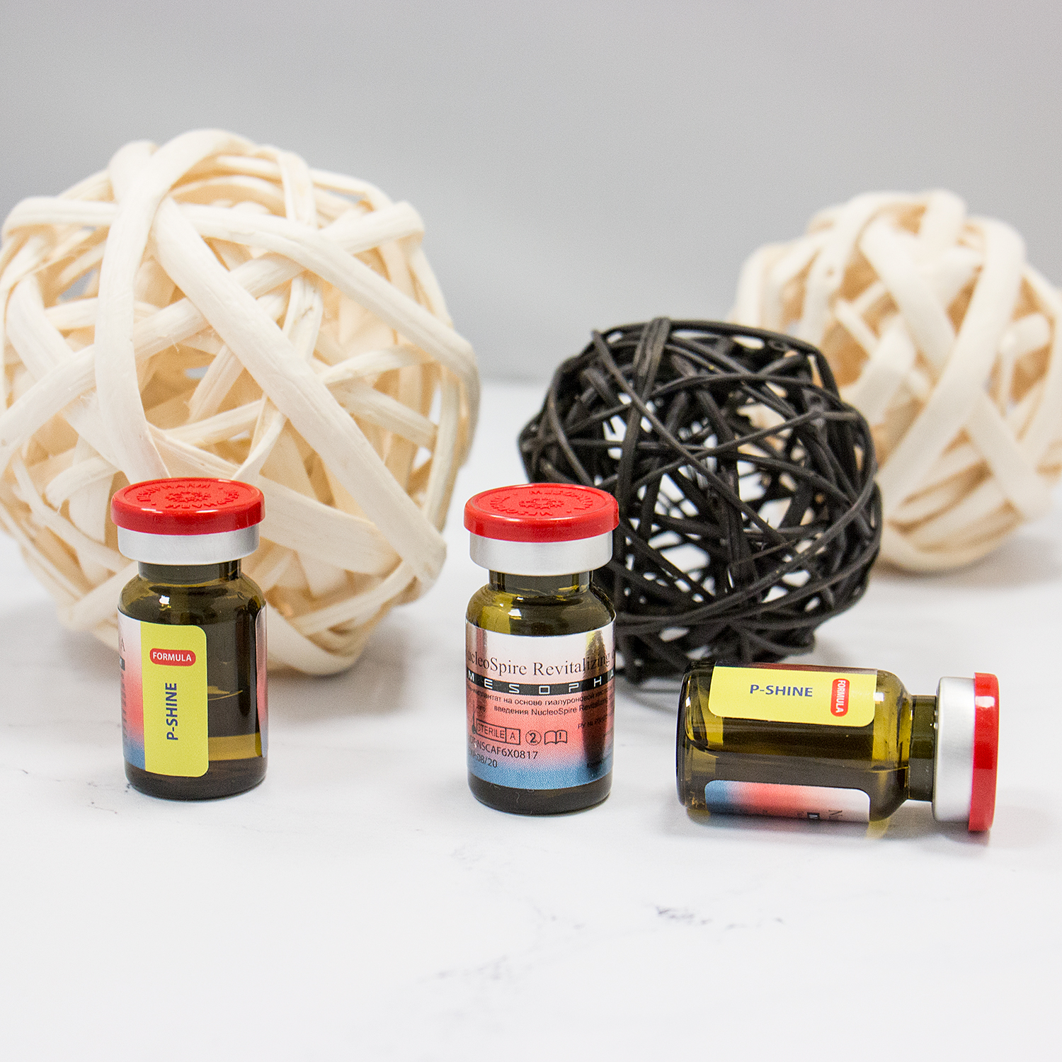 Препарат NucleoSpire сomplex A P-SHINE от Mesopharm предназначен для решения проблемы гиперпигментации различного генеза. Гиалуроновая кислота, витамин С и глутатион в составе, связывая свободные радикалы, блокируют каскад восстановительных реакций меланогенеза, предотвращая синтез пигмента. Аллантоин аскорбат и витамин С блокируют работу тирозиназы, уменьшая яркость пигментаций. Отбеливающий пептид ингибирует процессы меланогенеза, разрушает уже синтезированные избытки меланина, эффективно осветляя пигментные пятна. Уменьшение интенсивности пигмента наблюдается уже после 1-2 процедур.