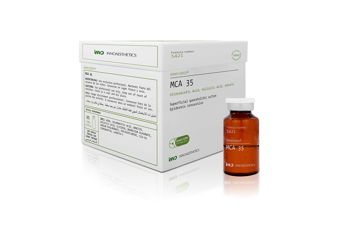 МСА 35 – ревитализирующий пилинг на основе модифицированной ТСА. Пилинг интенсивно стимулирует активность фибробластов, активизируя процессы выработки коллагена и эндогенной гиалуроновой кислоты. Также пилинг борется с такими эстетическими недостатками, как эластоз, рубцы, гиперкератоз. Такое двунаправленное действие позволяет быстро обновить дерму и эпидермис.