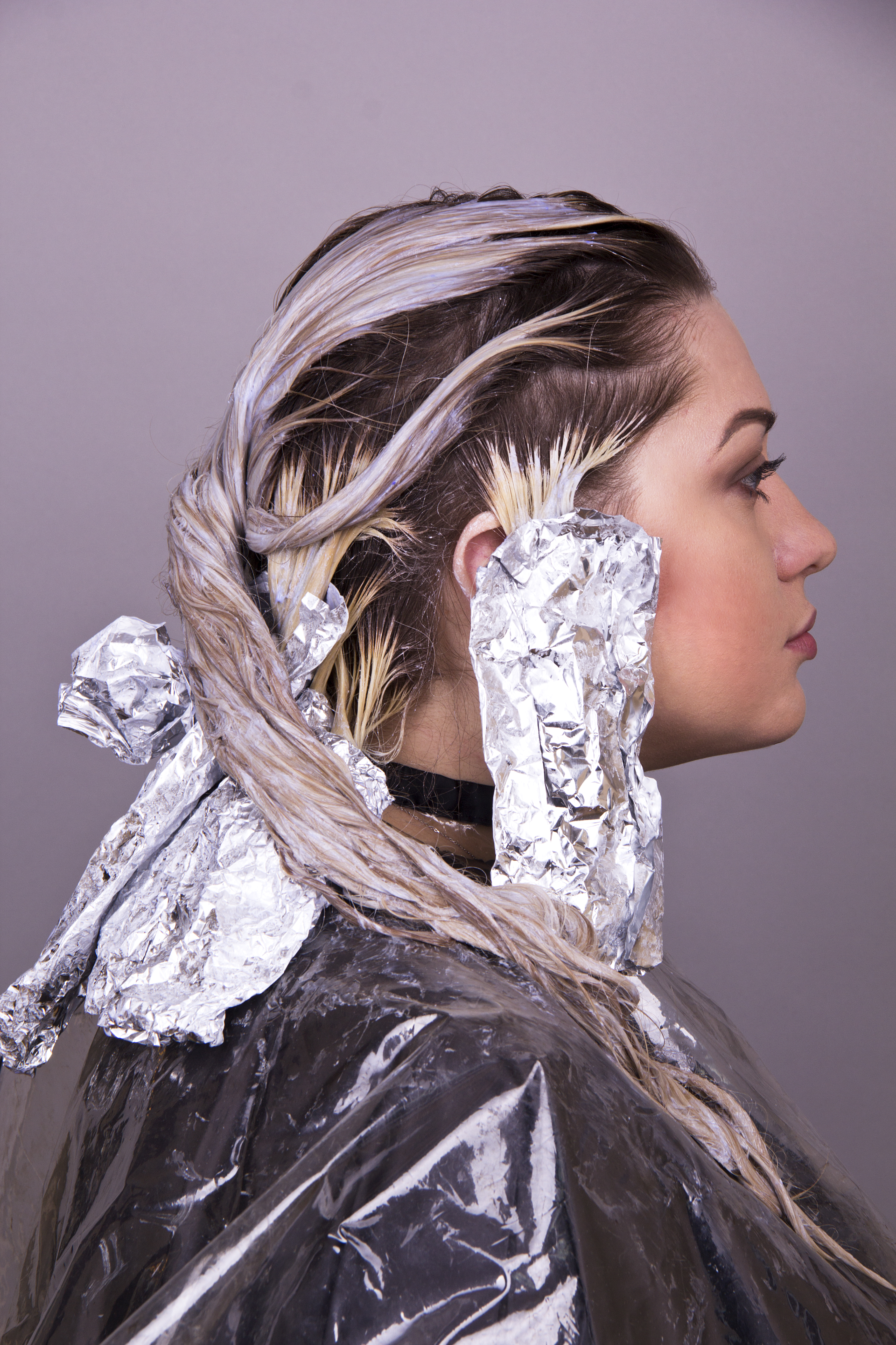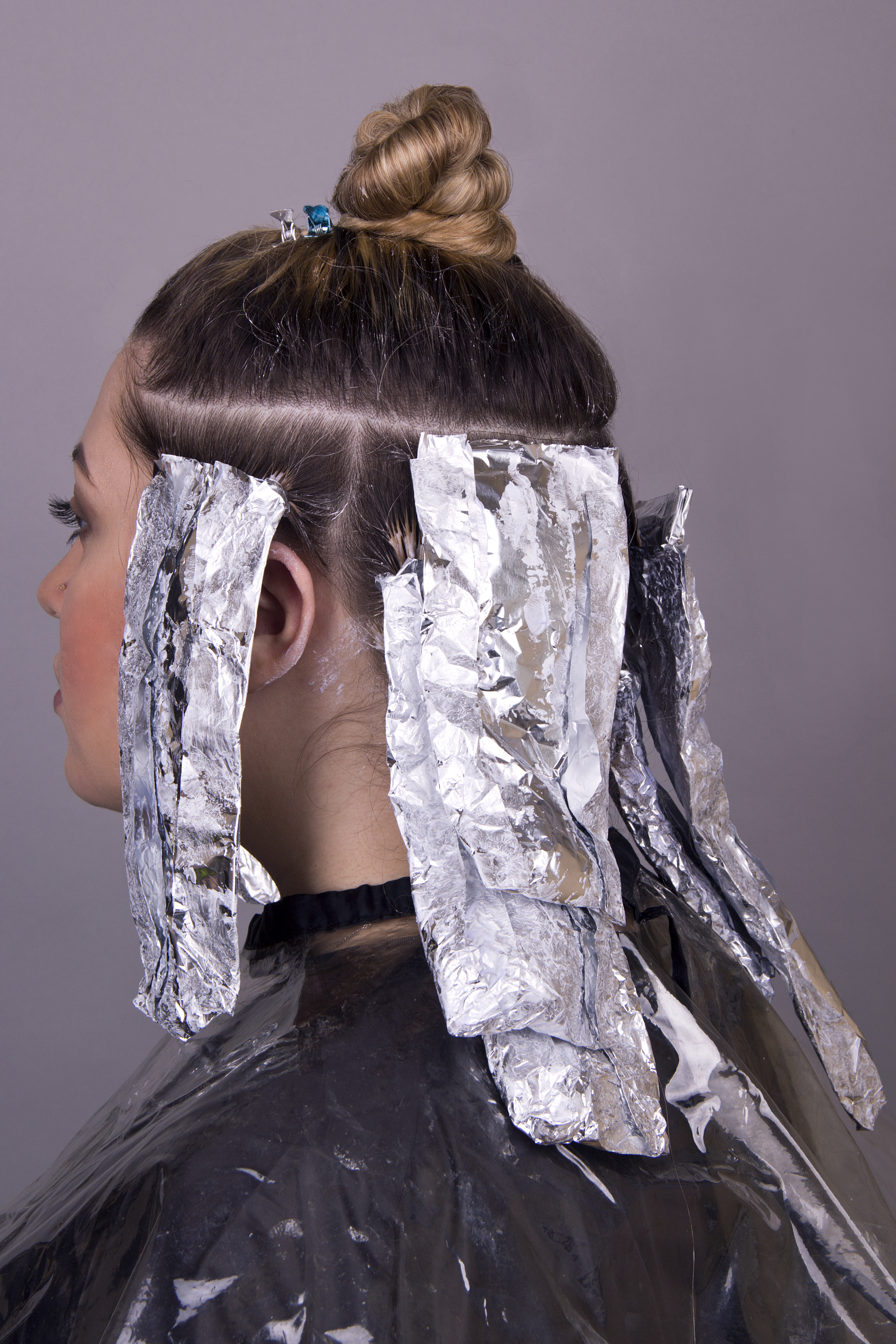 На нижне-затылочную, нижнюю и височные зоны наносим 4 разных смеси красителя , начиная от прикорневой зоны и заканчивая концами волос: