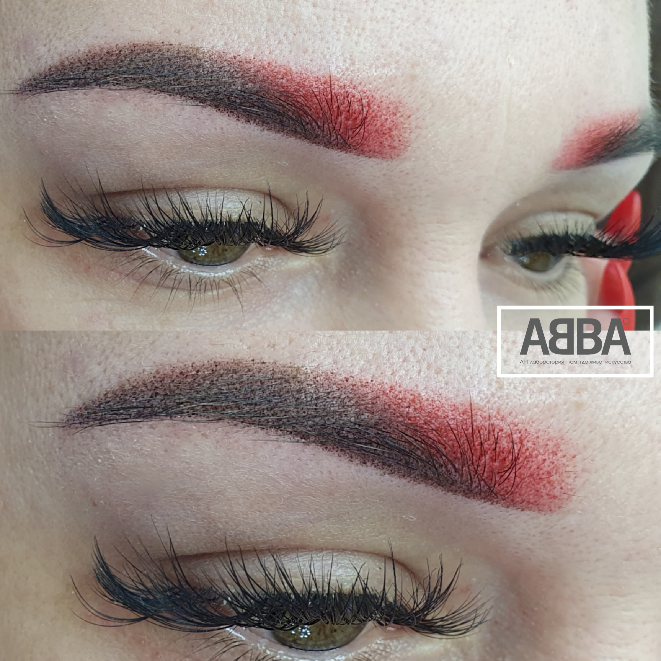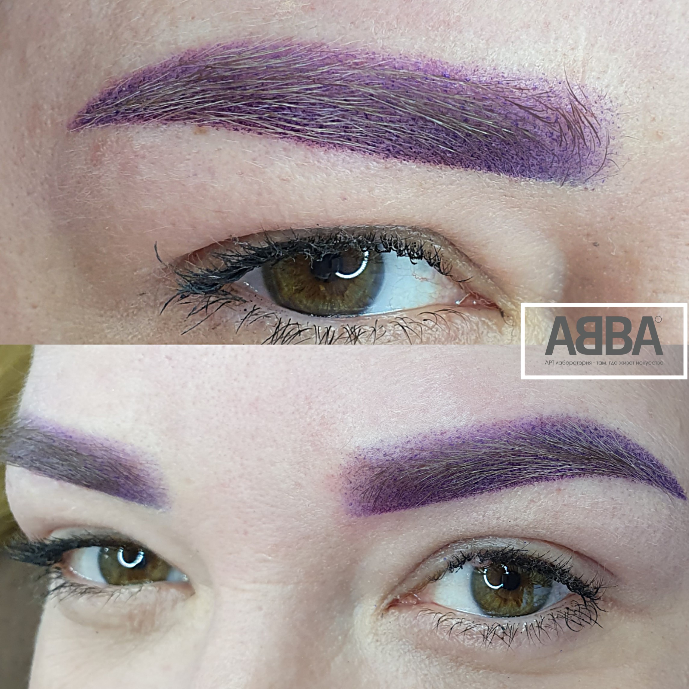 Хочу отметить, что за цветной перманентный макияж бровей может браться только опытный мастер, владеющий техникой напыления (легкое поверхностное внесение пигмента).